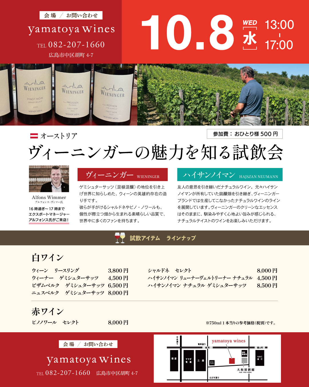 【10/8・水 13~17時】ヴィーニンガーの魅力を知る試飲会 in yamatoya wines