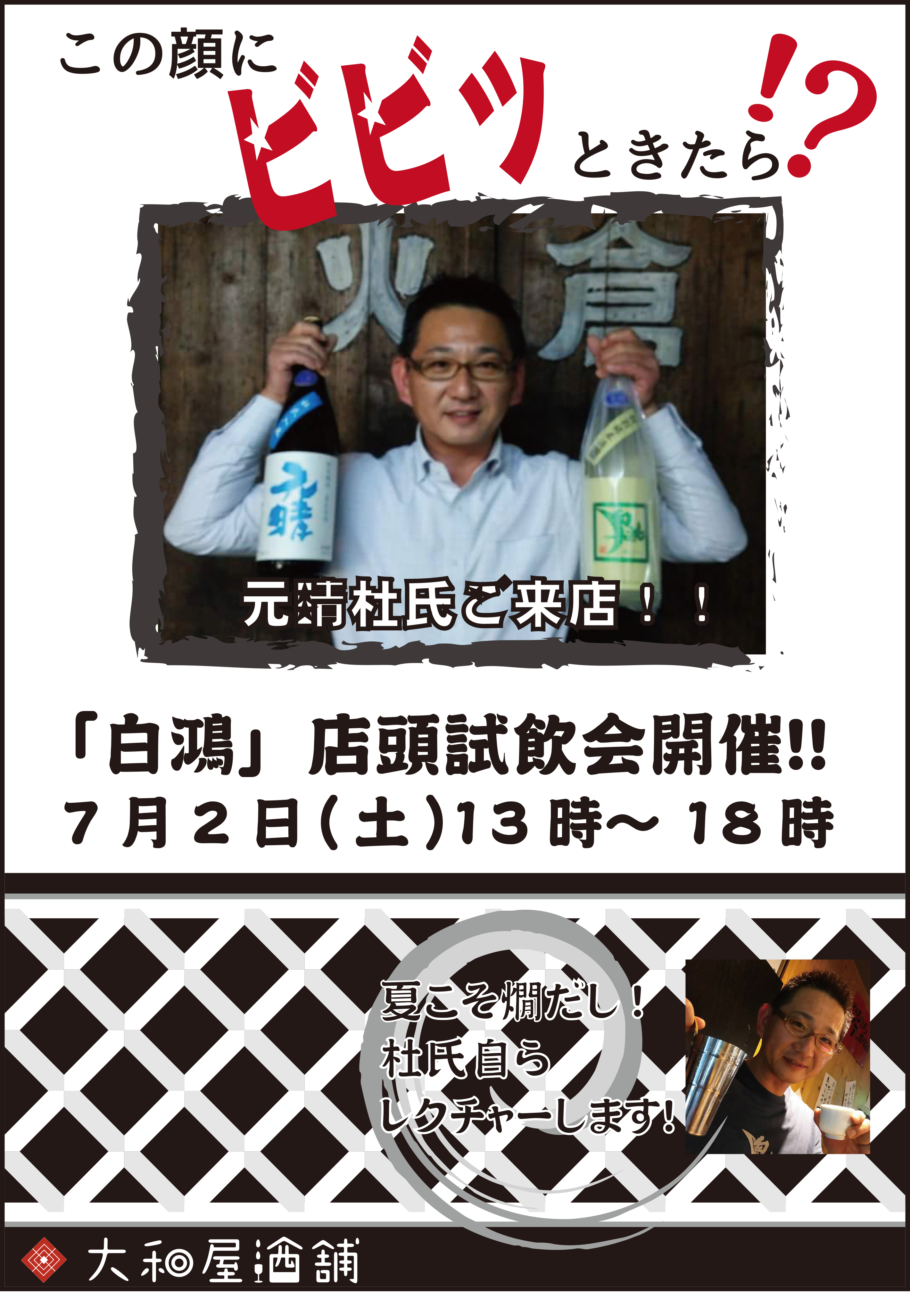 大和屋では別誂品 造り酒屋シリーズ「白鴻・元晴」でお馴染み、盛川酒造の杜氏・盛川元晴さんにお越し頂きます!