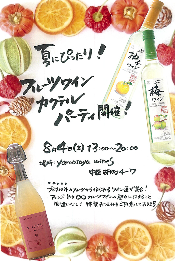 【8/4(土)開催!】夏にぴったり!フルーツワイン・カクテルParty!