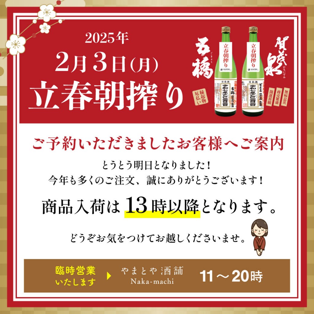 ★2月3日(月)立春朝搾りは【13:00】頃入荷予定です。